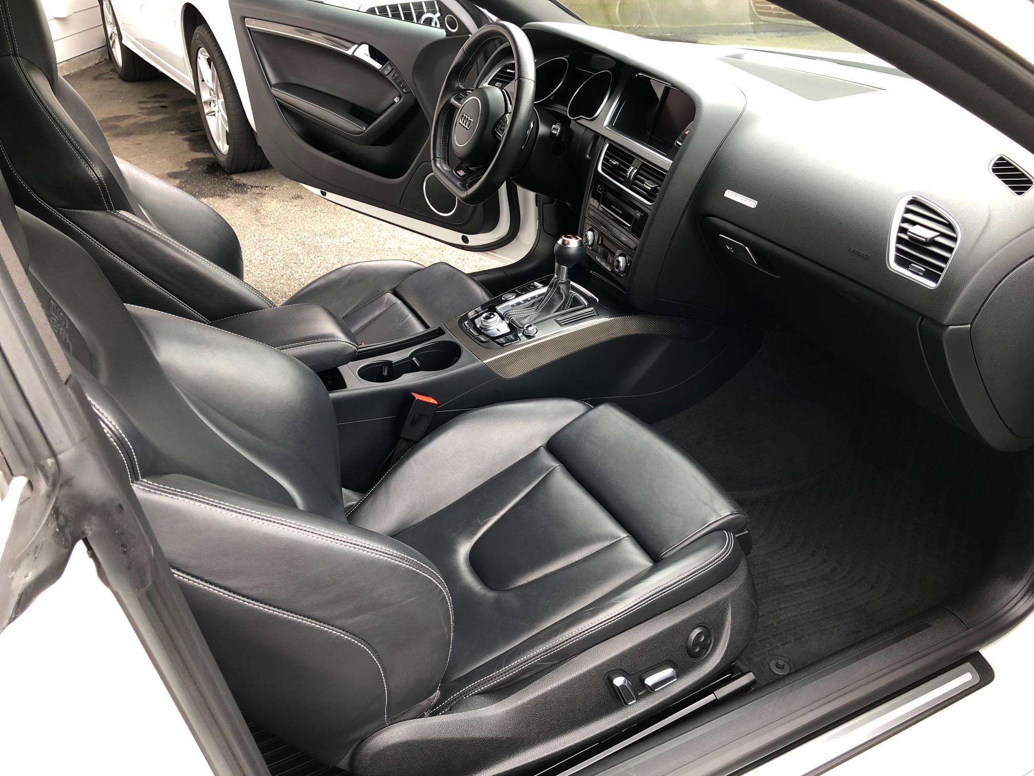 Local car very clean with Low KM’s, No Accident, 2013 Audi S5 Premium Technik comes with supercharged V6 produces 333 hp and 325 lb-ft of torque matched with seven-speed dual clutch automatic, 19-inch 5 spoke wheels, Glass sunroof, heated mirrors, automatic headlights and wipers, xenon headlights with LED daytime running lights, and Nappa leather sport seats with heat and power adjustment for the front seats, push button start, and Audi drive select to adjust suspension settings, throttle response and the automatic’s shift points. It has a 10-speaker stereo with satellite radio, Home-Link garage door opener, blind spot warning, adaptive headlights, heated rear seats, a rear-view camera and a Bang & Olufsen 14-speaker stereo with navigation system plus much more.