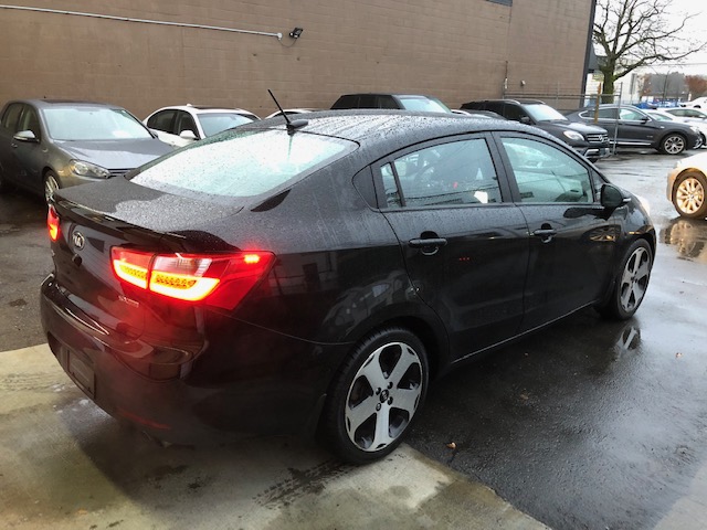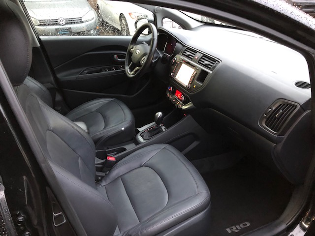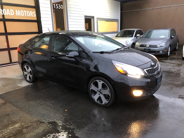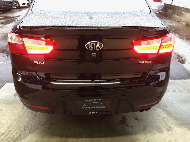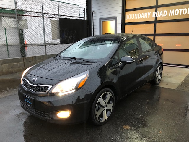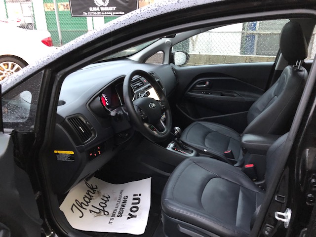 This fully loaded 2013 Kia Rio SX with Navigation system is locally owned major features are 17-inch alloy wheels, automatic climate control, larger brakes, sport suspension, twin-tip muffler, smart key with push-button start, heated steering wheel, Supervision instrument cluster, cooling glove-box, luggage net and tray, leather seats, alloy sport pedals, rain-sensing wipers, LED taillights and UV-reducing solar glass and navigation system for the UVO system.