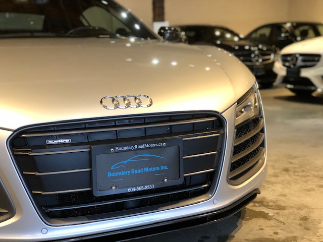 Local Car, One owner, Accident and Claim free vehicle, Complete two sets of tires and rims, service all been done at Boundary Audi store, This 2014 Audi R8 V10 plus comes with 550 hp matched with Six-speed manual transmission with gated shifter plus extensive list of standard features and options: 12 speaker Bang & Olufsen sound system, Nappa Leather seats, Alcantara roof liner, Navigation, music interface, Park assist with Backup camera and much more.